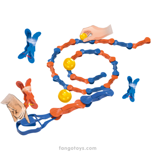 ¡Lleva el efecto dominó al siguiente nivel! El Jumping Domino transforma la clásica reacción en cadena en un espectáculo aéreo. Cada clip se «carga» con una banda elástica; cuando el clip anterior lo golpea, este libera su energía saltando por los aires y activando el siguiente en la fila.
