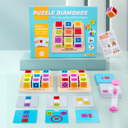 Juego Educativo Puzzle Diamonds – Rompecabezas de Lógica y Emparejamiento – Madera Montessori para Niños 3+ Años