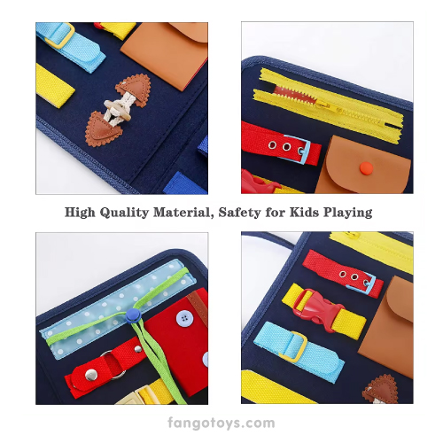 El tablero ocupacional montessori está hecho de fieltro con bordes suaves y cosido. Es inodoro y seguro. Hemos reforzado cada accesorio, aseguramos que la pieza de costura esté cuidadosamente elaborada y cosida firmemente, lo que puede evitar que las piezas pequeñas se pierdan. Los niños menores de 3 años deben jugar bajo la supervisión de los padres.